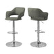 This sleek and contemporary set of 2 metal barstools finished in a dark coffee color is perfect for all types of entertainment and dining spaces. With a slightly curved high back in a cathedral window design, comfortably cushioned beige microfiber 360 deg