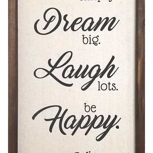 Get inspired and enjoy life in your home with this charming metal plate wall decor. Creatively handcrafted, this wall art will be a perfect accent for your existing room setting. It is made of wood and features a print on a linen background. The inspiring message on this metal art reads " Live, Dream, Laugh, Happy, Love. An artistic piece on the wall, this wall art will suitably anchor your room decor with quote that will continually warm the heart. Typography style 50% wood, 40% MDF, 10% linen Two D-rings hanging method Vertical hanging orientation Wipe clean with damp cloth. It is 12" X 1" X 24".